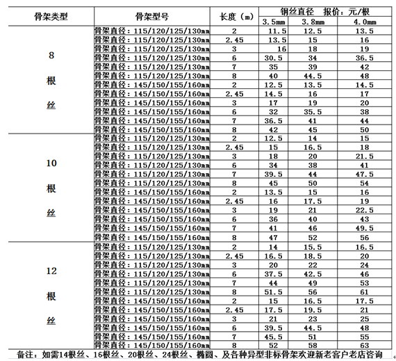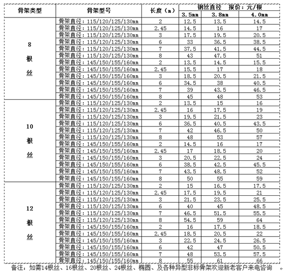 噴塑骨架價(jià)格表